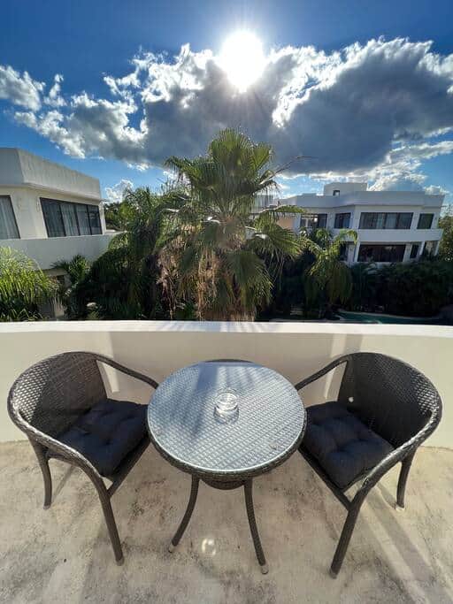 You have access to the whole complex with shared pool, hot tub and bar. You also have your own private hot tub on your private balcony.
